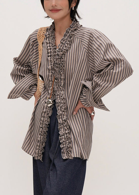 Art Navy Tops Ruffles Trim Half Sleeve Shirts Blouse Plus SizeFabric: Cotton 45%. Linen 55%Size & Fit: Fit: This garment fits true to size.Length: Siz..